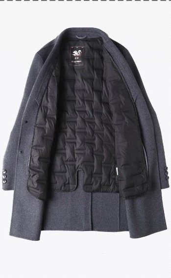 双面呢男士大衣 绵羊毛 羽绒内胆 黑、灰