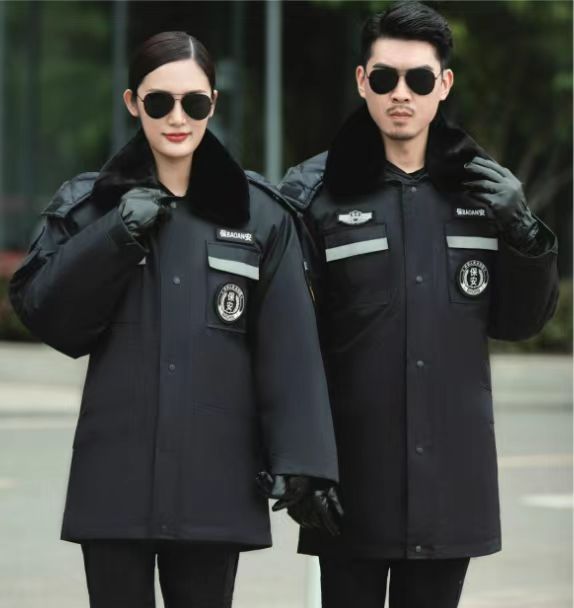 加厚羊绒特勤反光条大衣 中长款、