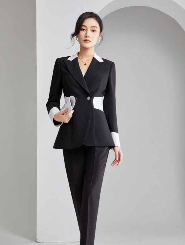 河北职业装定制定做,时尚女西装,线条简洁流畅,版型修身不臃肿。展现女性干练魅力,无论是商务洽谈还是日常通勤,都能完美驾驭。