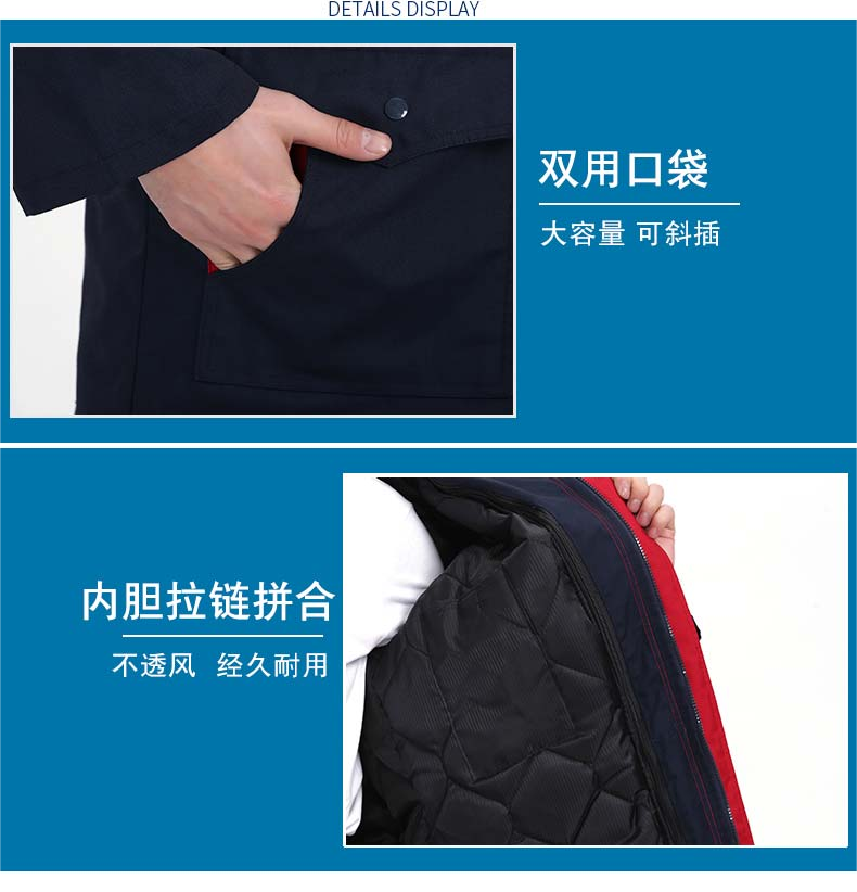 中长款工程装冬款棉服 可拆卸加厚保暖 一衣三穿 涤棉厚珠帆 耐磨有型 抗风抗寒不掉色
