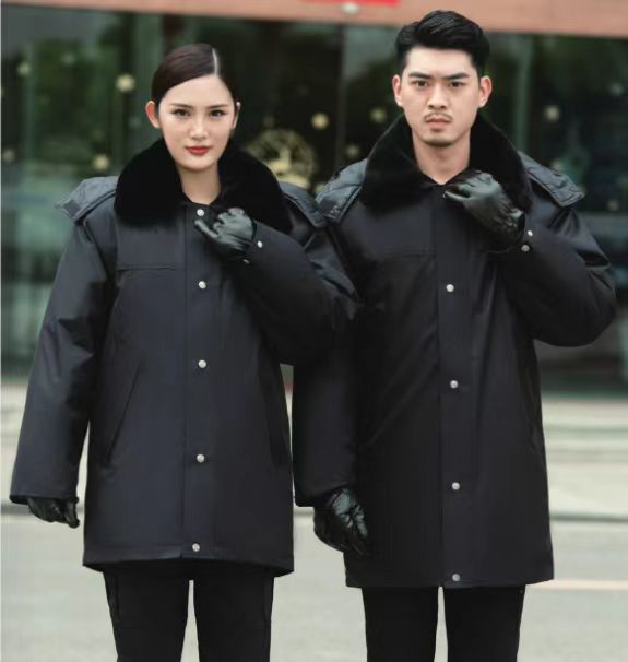 加厚羊绒大衣 中长款和加长款两种款 面料是雪克面料,内胆羊绒,整体防风、防雪、防雨、防寒,不仅保暖,又能提升整个企业的形象。