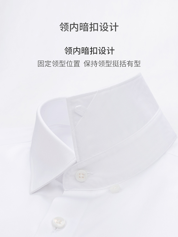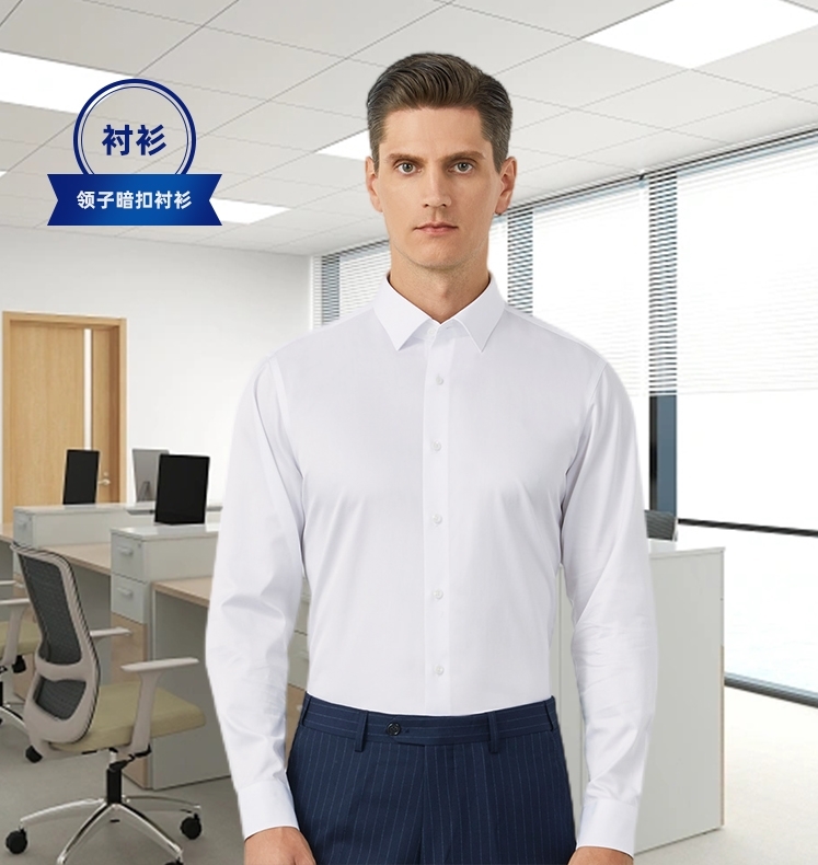 男士衬衣定制,这款衬衣领内是暗扣设计,固定领型位置,让男士更加挺括有型以及更加有精神。 袖口有精细的纽扣,更加显得男士更加精神以及干练!