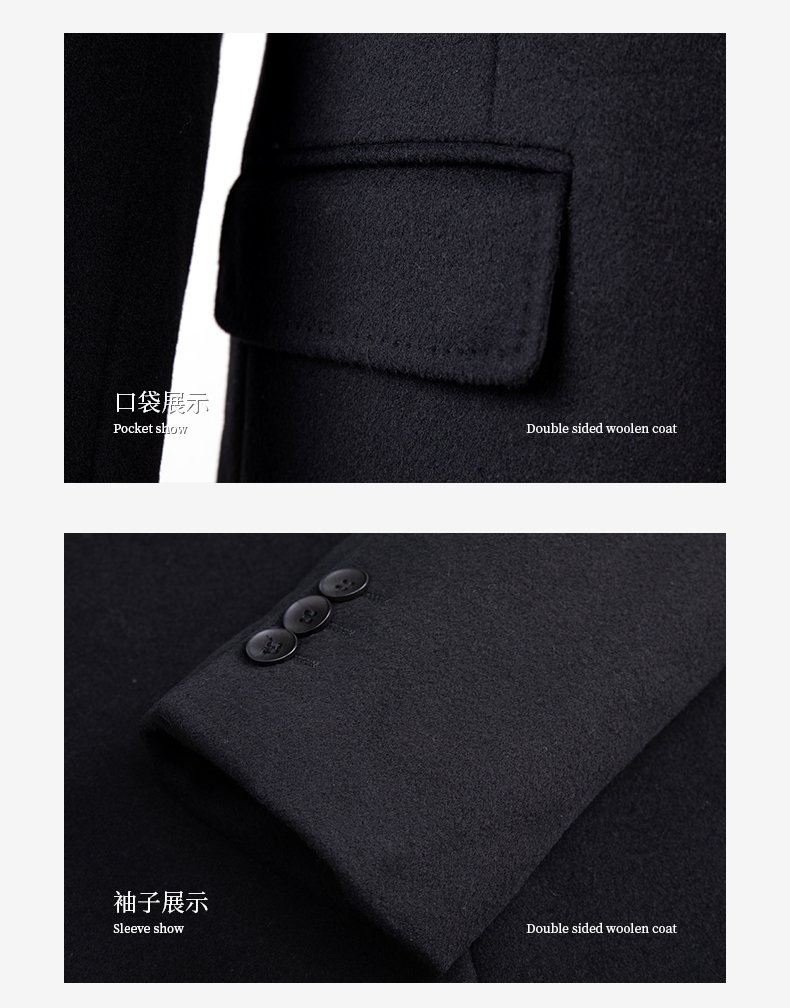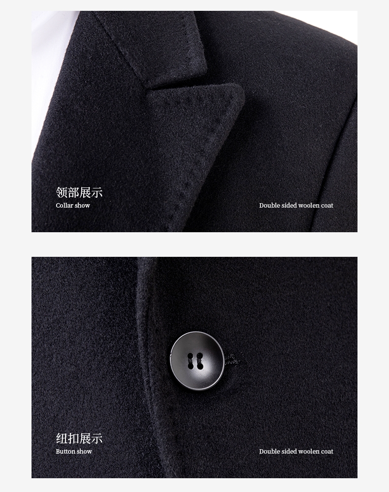 双扣羊毛大衣,柔软保暖性强,毛织细腻,垂感好;立体裁剪,保暖不失风度;