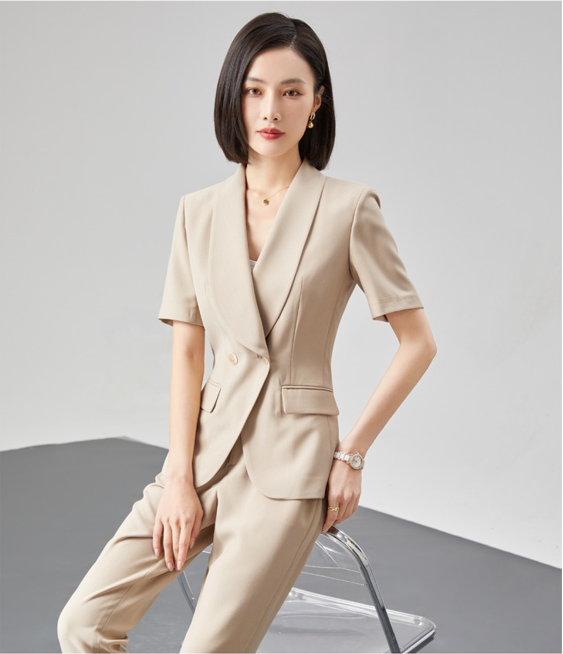 平日里职场穿搭,喜欢干练一点,卡其色是不错的穿搭方案,石家庄职业装定制定做,让你在职场中展现出自己的魅力。